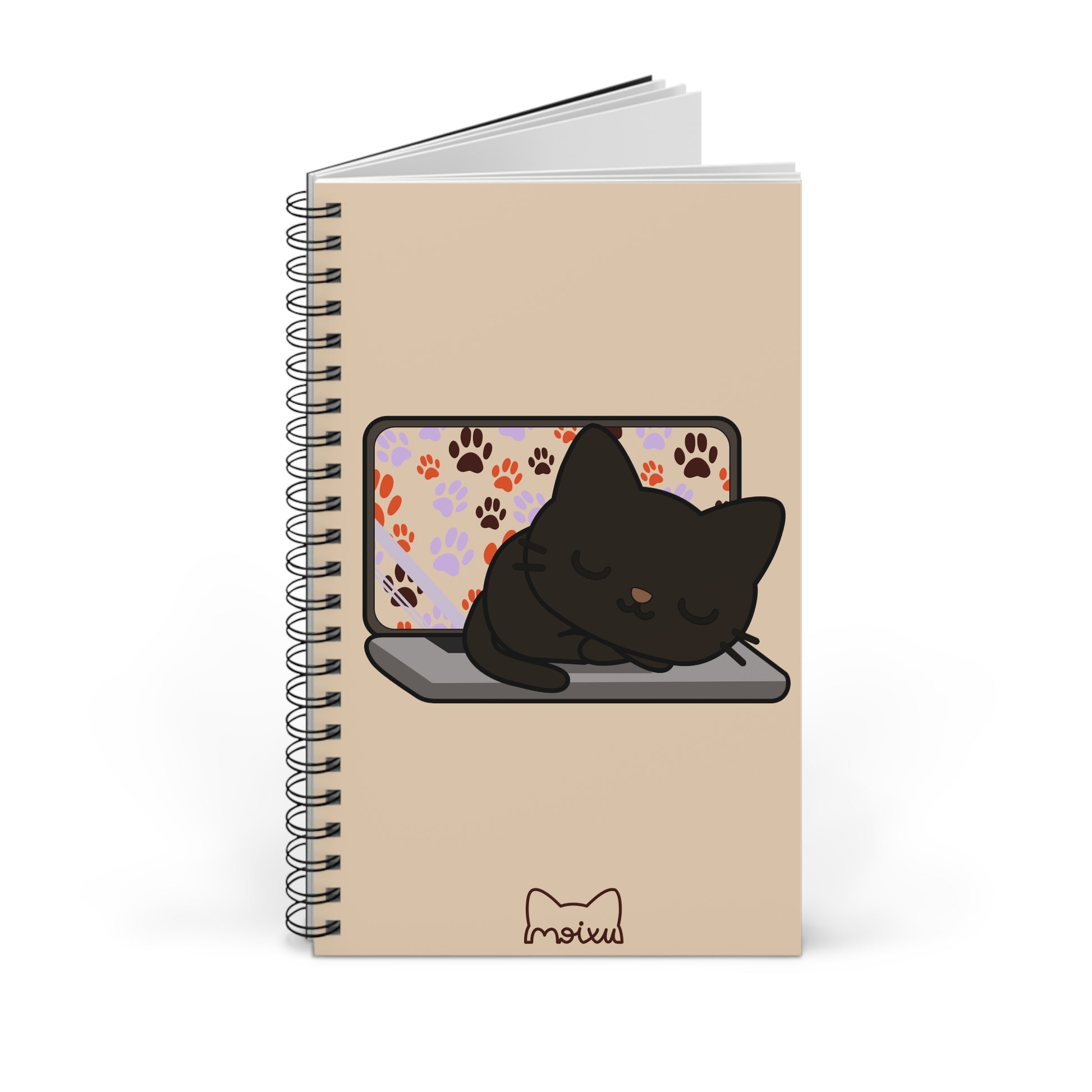 La llibreta “Work in pawgress” il·lustra la capacitat única dels gats per dormir absolutament a qualsevol lloc menys al seu llit, i encara més si justament el necessites per continuar treballant.